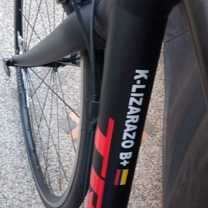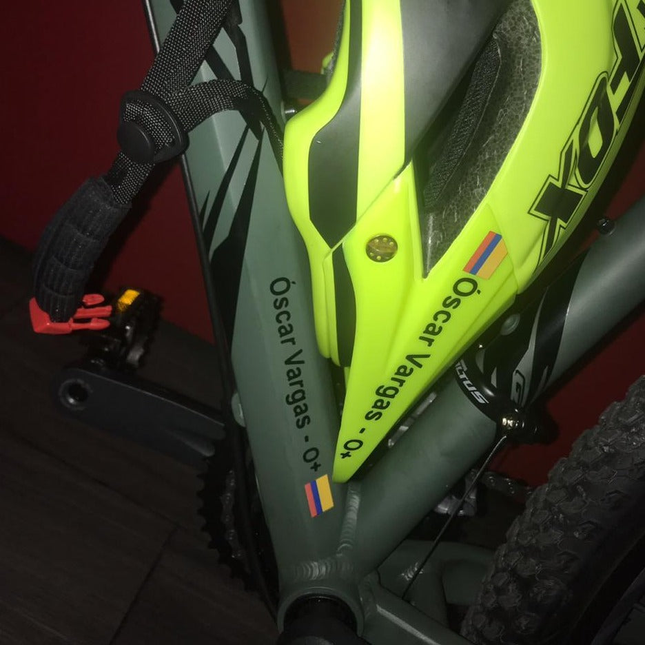 Set de 2 Stickers grandes + 2 Stickers pequeños en Vinilo LAMINADO de CORTE personalizados con tu NOMBRE APELLIDO, RH y BANDERA.