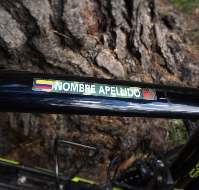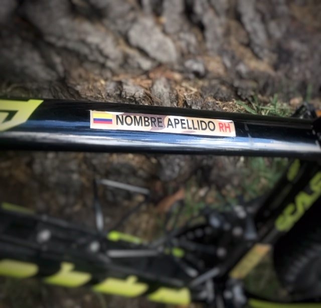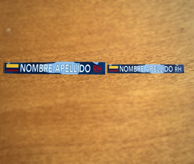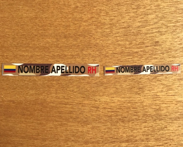 Set de 4 Stickers grandes + 4 Stickers pequeños en Vinilo LAMINADO personalizados con tu NOMBRE APELLIDO, RH y BANDERA.